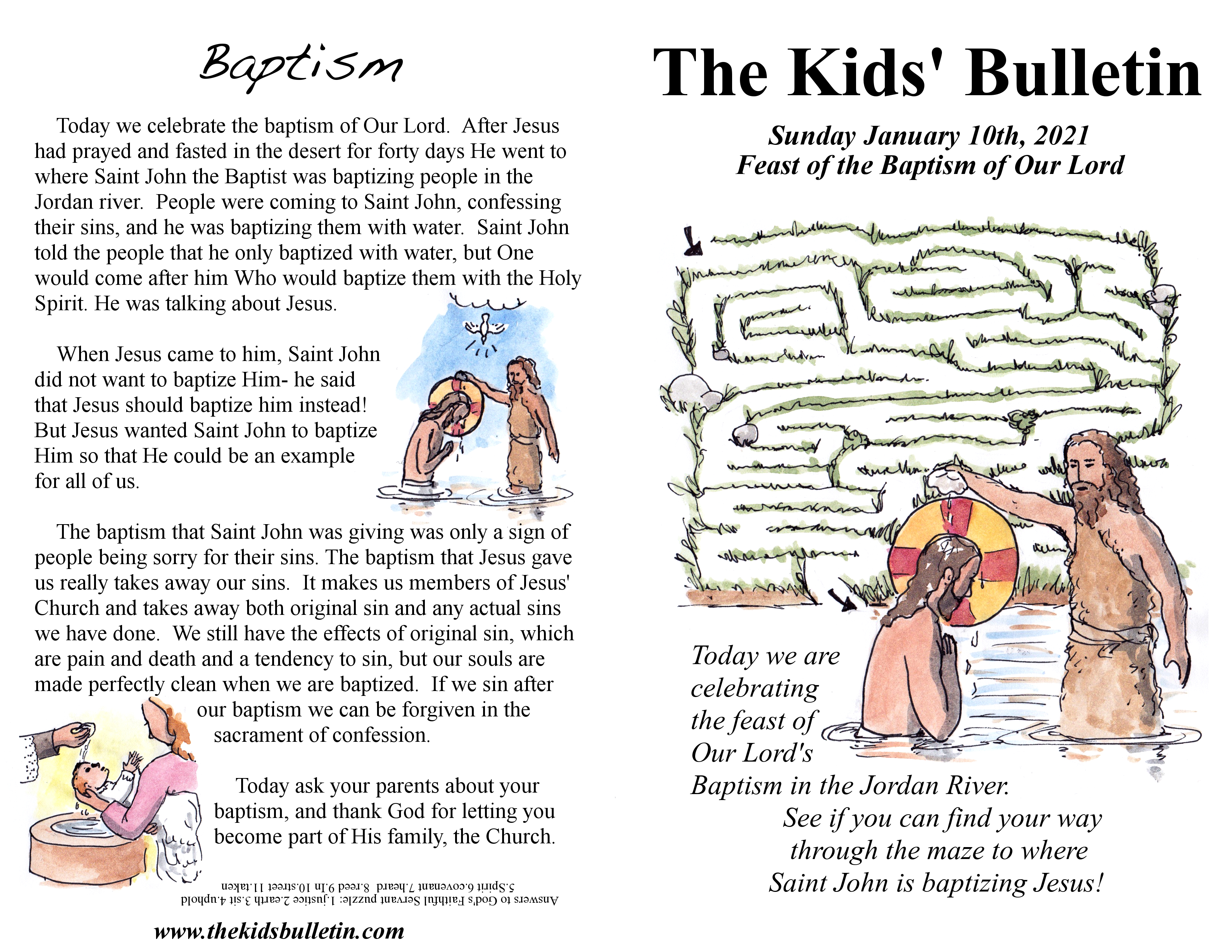 The Kids’ Bulletin for Sunday January 10th, 2021: Feast of the Baptism of Our Lord