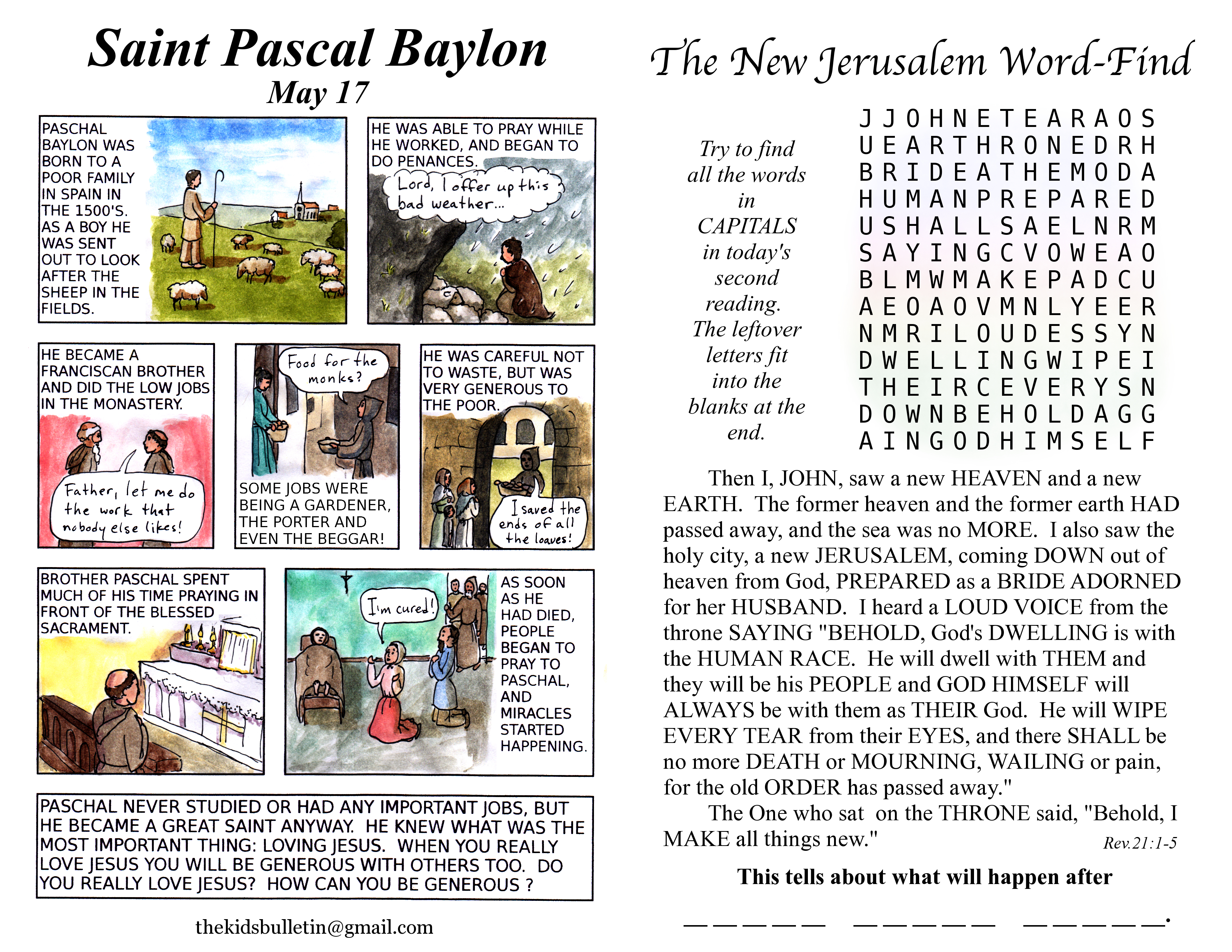 The Kids’ Bulletin for Sunday May 15th, 2022