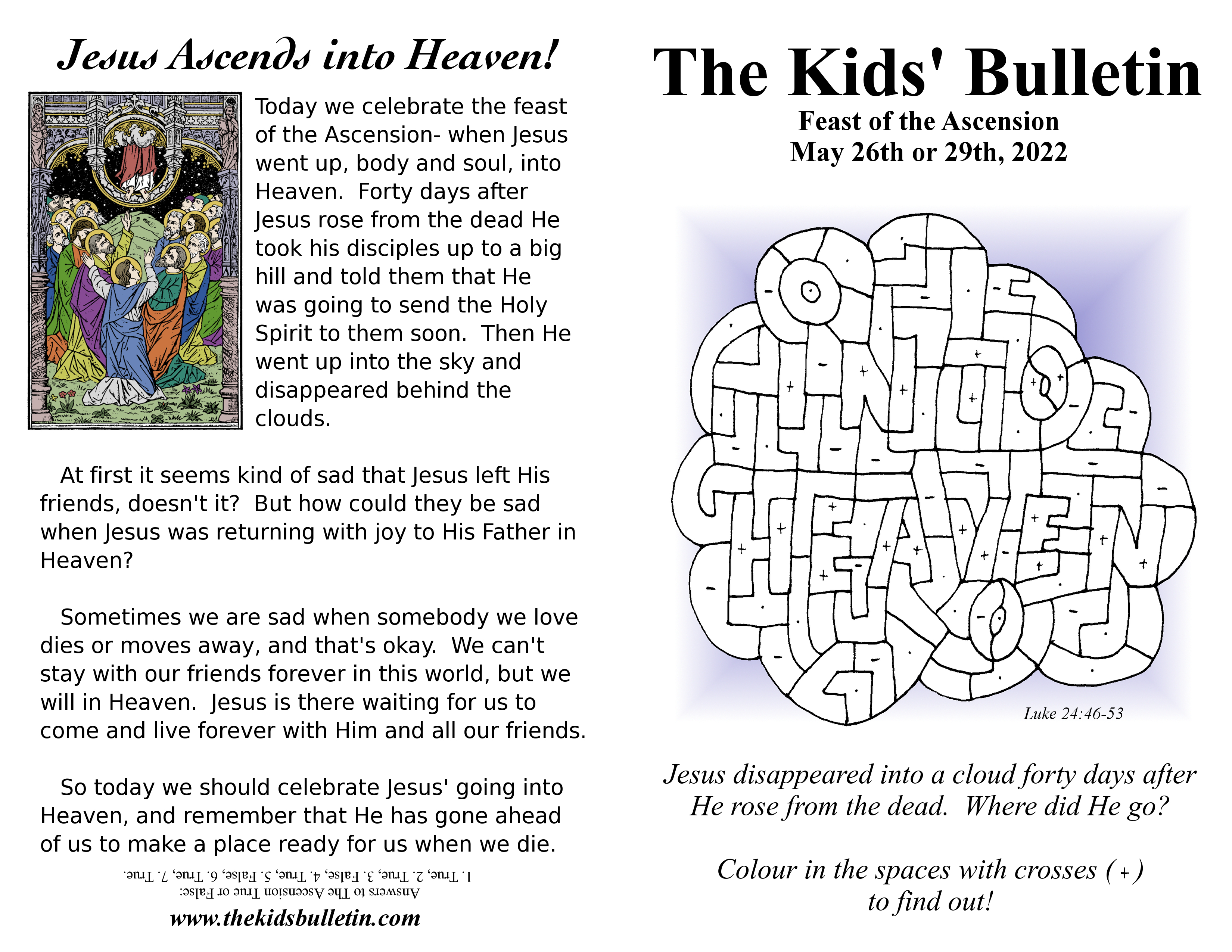 The Kids’ Bulletin for the Feast of the Ascension: Thursday May 26th or Sunday May 29th, 2022