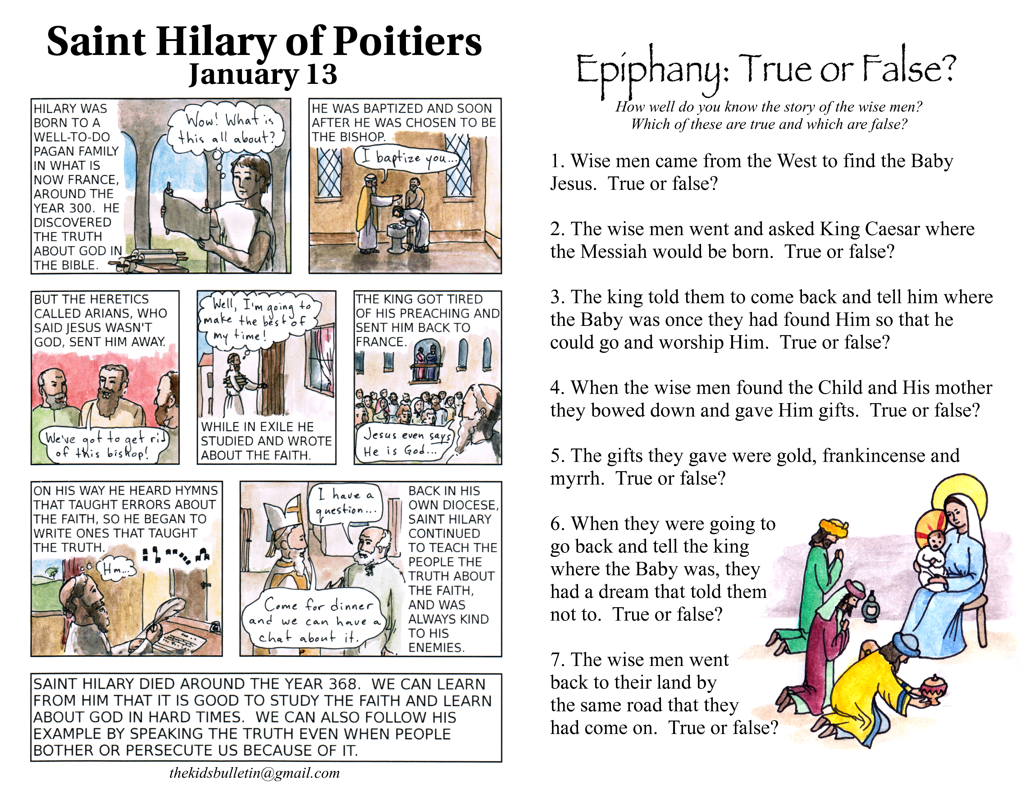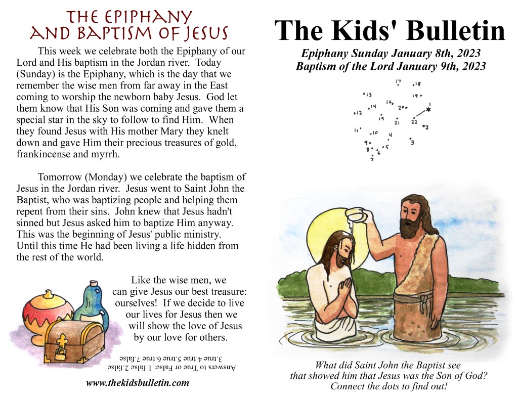 The Kids’ Bulletin for Sunday January 8th: Epiphany Sunday, and January 9th: Baptism of Our Lord 2023