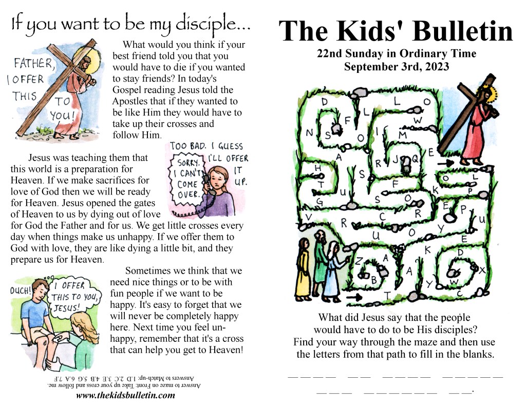 Thank you for always sharing us the Kids’ Bulletin. All our printed copies were taken by the kids attending the Holy Masses and those parents whose children and young relatives were not around.