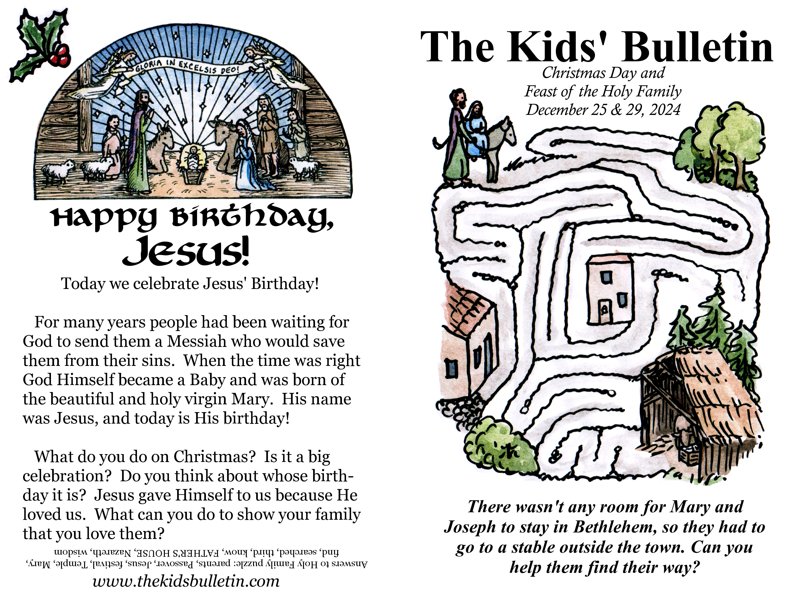 The Kids’ Bulletin for Christmas 2024 and the Feast of the Holy Family (Sunday December 29th, 2024)