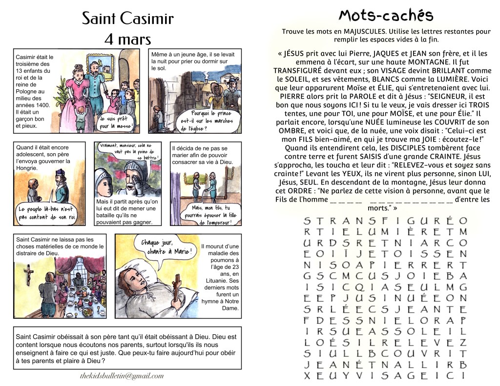 Le Bulletin des Enfants pour le Deuxième dimanche du Carême